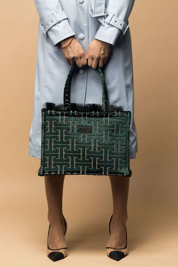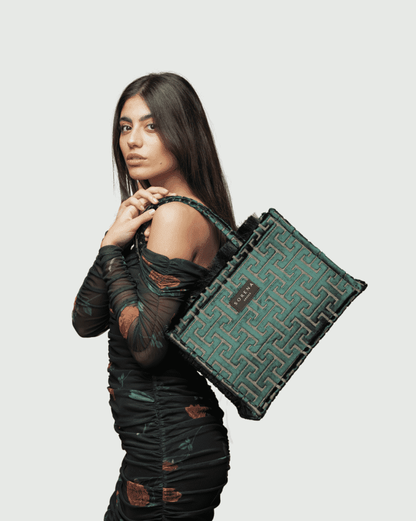 Η Nafsika Bag-Sorena είναι κατασκευασμένη από βελούδινο και μεταξωτό ύφασμα με όμορφο μοτίβο.