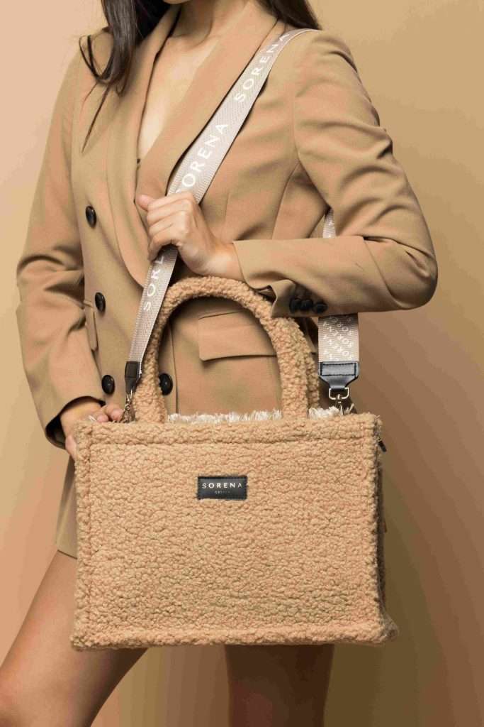 Η Teddy Bag-Sorena είναι κατασκευασμένη από χνουδωτό βαμβακερό ύφασμα με απαλή αίσθηση.